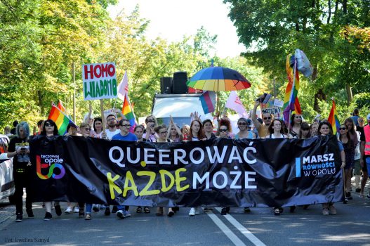 7 lipca 2018 roku przez Opole przeszedł pierwszy Marsz Równości, zaczynając na placu Daszyńskiego, a kończąc na placu pod Narodowym Centrum Polskiej Piosenki. Około 1000 osób bawiło się na ulicach, wznosząc hasło „Queerować każde może”. Po święcie równości wspólnie bawiliśmy/łyśmy się w pubie Ostrówek podczas afterpaty.